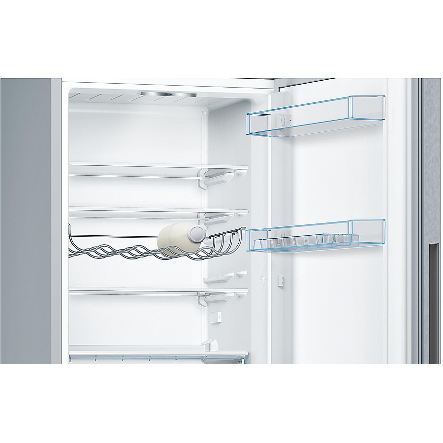 Deze Bosch KGV33VLEA vrijstaande koel-vriescombinatie heeft een totale netto inhoud van 289 ltr. De koelkast heeft een zuinig energielabel E en een geluidsniveau van 39 dB. Energiezuinige LED verlichting aan de binnenzijde zorgt voor een helder en gelijkmatig zicht in de koelkast.