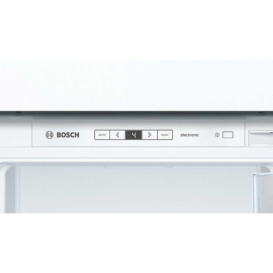 Deze Bosch KIR41AFF0 inbouw koelkast heeft een totale netto inhoud van 211 liter. De koelkast heeft een zuinig F energielabel en een geluidsniveau van 33 dB. De energiezuinige LED verlichting verlicht de binnenzijde helder en gelijkmatig.