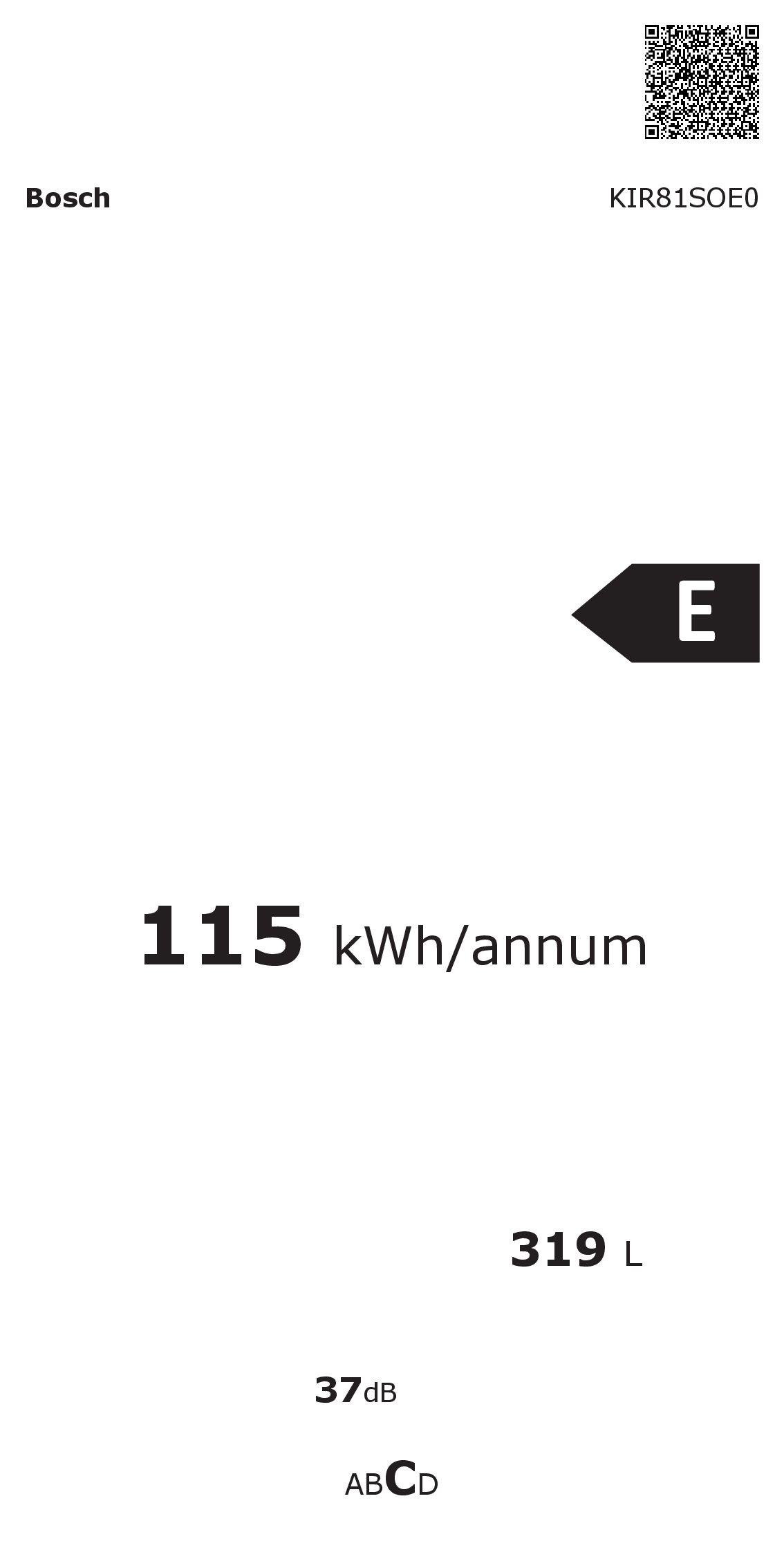 Deze Bosch KIR81SOE0 inbouw koelkast heeft een totale netto inhoud van 319 liter. De koelkast heeft een zuinig E energielabel en een geluidsniveau van 37 dB. De energiezuinige LED verlichting verlicht de binnenzijde helder en gelijkmatig.