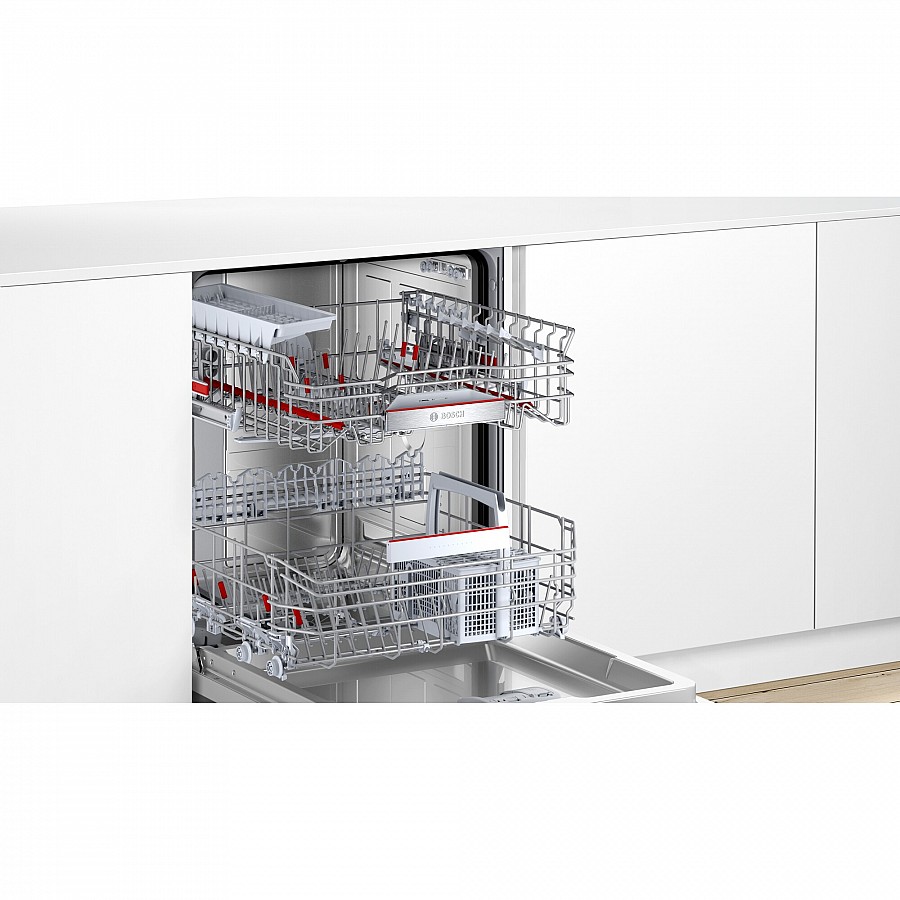 Deze Bosch SBH4EBX12E volledig geïntegreerde vaatwasser combineert uitzonderlijke stilte, superieure reinigingskracht, intelligente droogtechnologie, flexibele laadruimte en moderne smart home connectiviteit voor een onovertroffen gebruiksgemak in uw keuken. Met een energiezuinige prestatie en een capaciteit voor dertien couverts biedt dit toestel alles wat u nodig heeft voor een brandschoon en comfortabel resultaat na elke maaltijd, terwijl het perfect is weggewerkt in uw keukeninrichting.