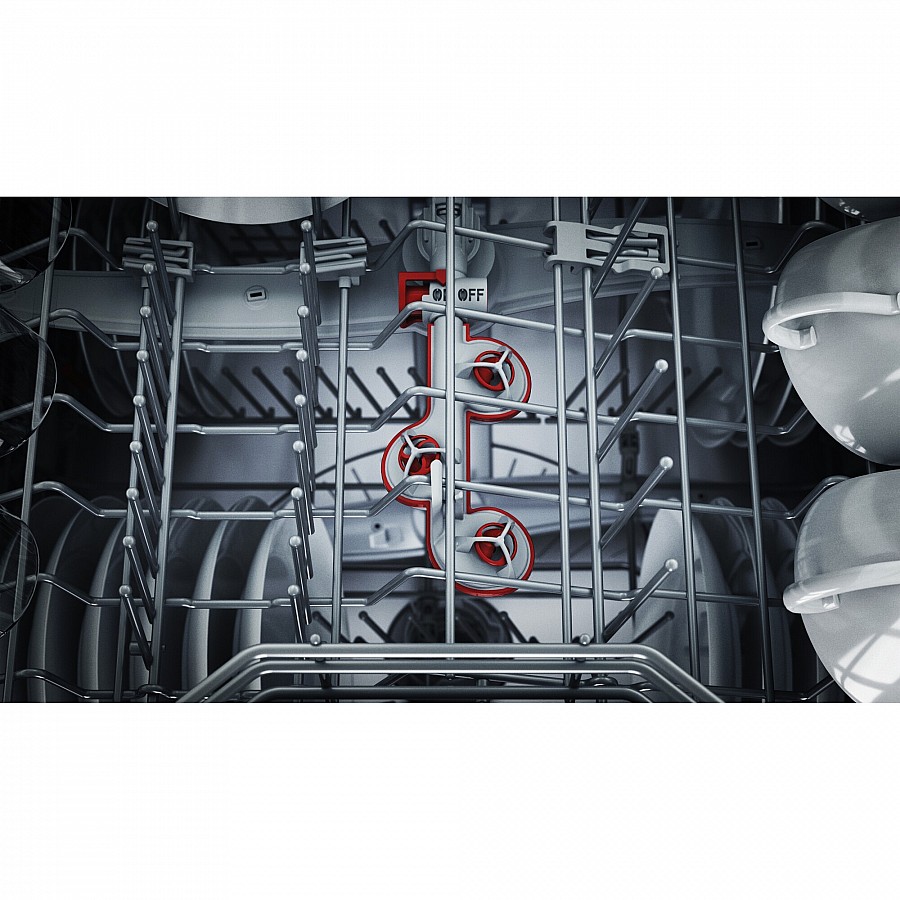 Met een geluidsniveau van slechts 42 dB zorgt de Silence Plus technologie voor een bijzonder stille werking, wat ideaal is voor open keukens of wanneer u graag een rustige leefomgeving heeft. Deze stilte wordt gerealiseerd door hoogwaardige isolatiematerialen en de energiezuinige EcoSilence Drive motor, waardoor u nauwelijks merkt dat de vaatwasser aan staat, zelfs niet tijdens de krachtigste programma's.