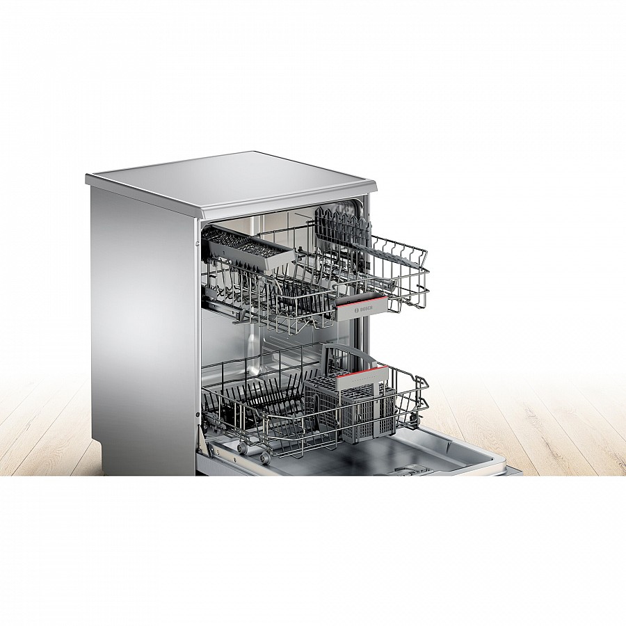 De geavanceerde EcoSilence Drive motor is de krachtbron van deze vaatwasser en zorgt voor een uitzonderlijk laag geluidsniveau van slechts 46 decibel. Deze meest energiezuinige en stille motortechnologie van Bosch garandeert dat uw keuken rustig blijft, zelfs tijdens de intensiefste wasprogramma's, wat bijdraagt aan een aangename leefomgeving.