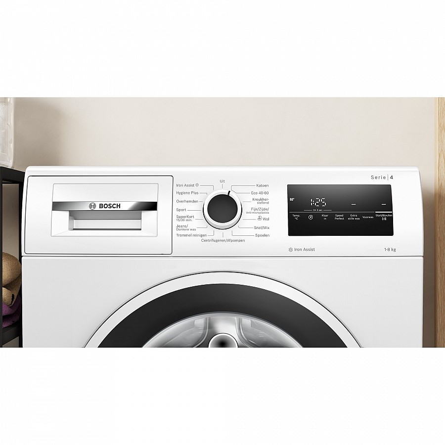 De innovatieve Iron Assist functie maakt gebruik van stoom om kreukels in uw droge wasgoed te verminderen, wat het strijkwerk tot een minimum beperkt. Deze stoombehandeling zorgt ervoor dat vezels ontspannen en kreukels zich eenvoudig laten verwijderen, waardoor uw kleding er weer fris en verzorgd uitziet. Het is de ideale oplossing voor overhemden en kleding die u direct uit de kast wilt dragen.
