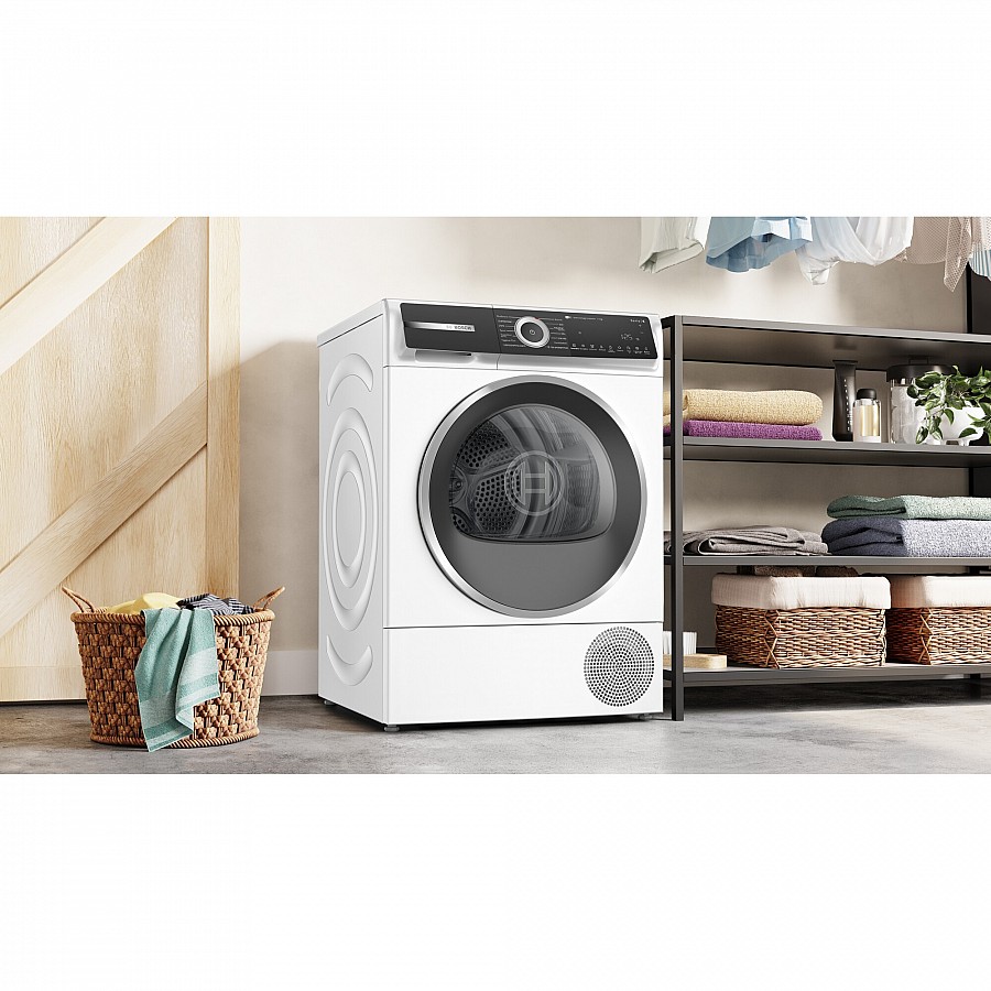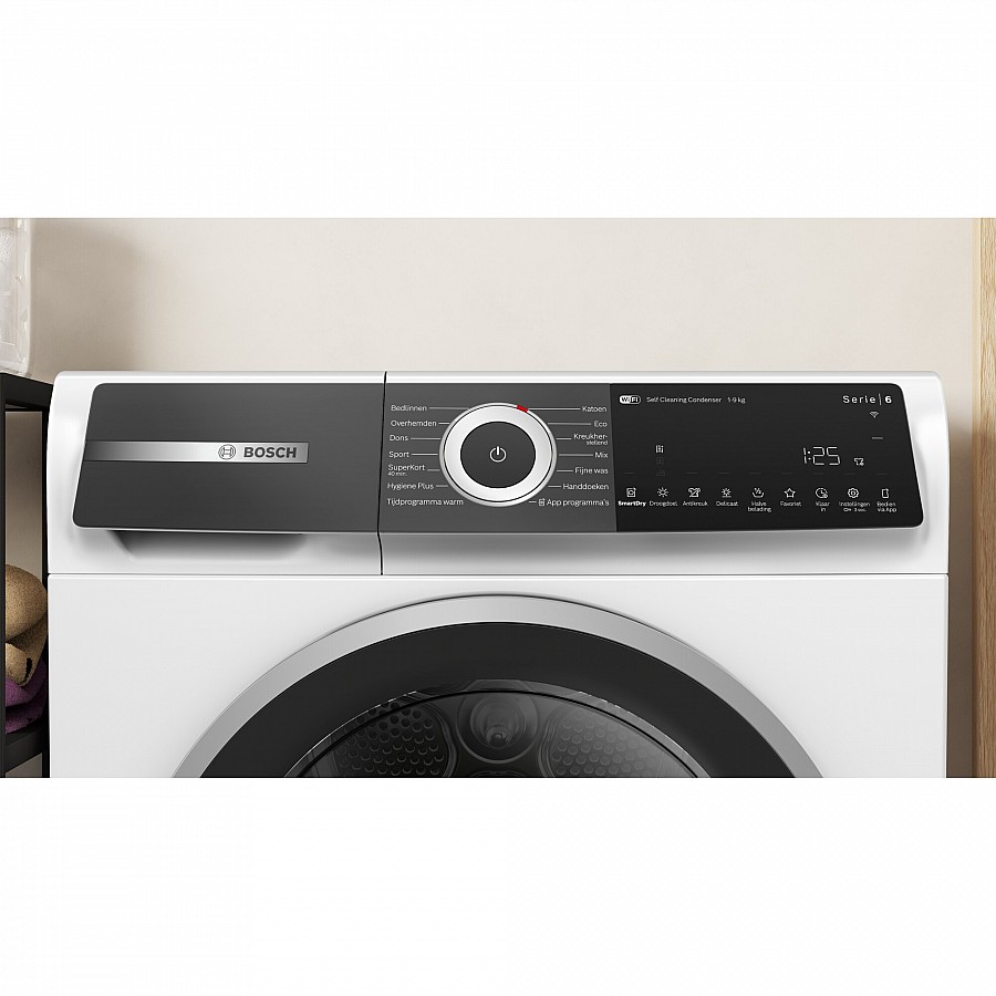Deze Bosch WQH245B7NL warmtepompdroger combineert uitzonderlijke energiezuinigheid met intelligente functies voor een perfecte droogprestatie. De innovatieve Self Cleaning condensor zorgt voor een constant laag energieverbruik door zichzelf automatisch schoon te houden, wat de efficiëntie op de lange termijn garandeert. Dankzij de Auto Dry functie stopt de droger automatisch zodra de door u gewenste droogtegraad is bereikt, zodat uw kleding altijd perfect wordt behandeld. De Smart Dry technologie analyseert de laatste wasbeurt en kiest in combinatie met een compatibele wasmachine het ideale programma. Met de Home Connect app bedient u de droger op afstand, start u hem op het meest voordelige tijdstip via Smart Start en heeft u toegang tot extra functies.