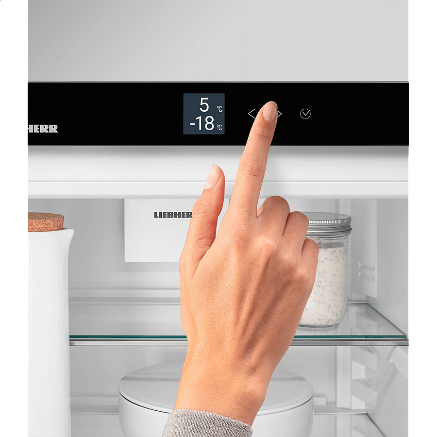 Het koelgedeelte boven is praktisch ingedeeld met in hoogte verstelbare leggers van veiligheidsglas, handige vakken in de binnendeur en een ruime groentelade. Geniet van heldere LED binnenverlichting voor optimaal zicht op al je producten, terwijl het EasyTwist-Ice systeem je voorziet van ijsblokjes met slechts een simpele draai.