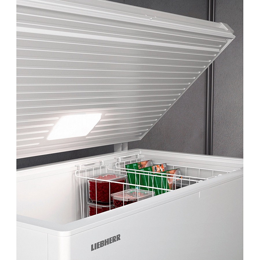 De solide Liebherr CFf2080 vrieskist is een zuinige vrieskist met balansdeksel en verlichting. De vrieskist heeft een netto inhoud van 353 liter en heeft een F energielabel. Het door Liebherr ontwikkelde StopFrost systeem vermindert ijsvorming op de verpakkingen en zorgt dat de deksel van deze vrieskist altijd moeiteloos kan worden geopend. Bij plaatsing in een koudere ruimte voorkomt het warmewand systeem condensvorming.