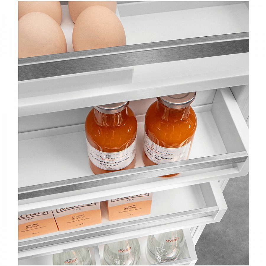 Het interieur is uitzonderlijk gebruiksvriendelijk dankzij de heldere LED plafondverlichting, de eenvoudig te verplaatsen GlassLine plateaus die tot 30 kg dragen en volledig uitneembare deurvakken. De bediening gebeurt intuïtief via gevoelige tiptoetsen, en de verzonken greep over de volledige deurhoogte zorgt voor een strakke look en een gemakkelijke opening. Alles is ontworpen om het dagelijks leven eenvoudiger en efficiënter te maken.