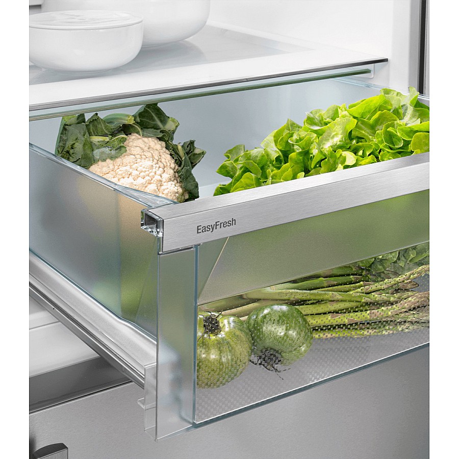 De droge SmartSteel achterwand en het Touch & Swipe kleurendisplay zijn niet alleen mooi maar ook handig. De LightTower verlicht ieder hoekje van het koeldeel en de deuren met SoftSystem sluiten zacht. Groente blijft langer vers in de EasyFresh lade op telescooprails en het NoFrost vriesdeel met LED verlichting hoeft u nooit te ontdooien. In een handomdraai maakt u 60 ijsblokjes met EasyTwist-Ice en dankzij VarioTemp kan het vriesgedeelte bij behoefte worden ingesteld als extra koelruimte of keldervak. Geschikt voor smarthome met optionele SmartDeviceBox.