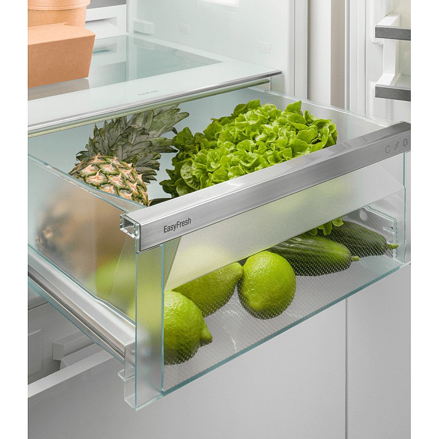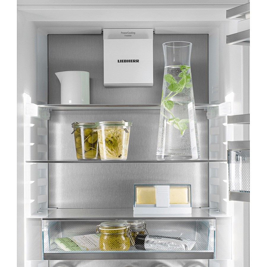 Deze Liebherr ICNd 5153 inbouw koel-vriescombinatie uit de Prime-serie en daarmee aan luxe geen gebrek. De SmartSteel achterwand geeft een professionele uitstraling. Perfecte verlichting met de LED wandpanelen en de deur met SoftSystem sluit altijd zacht. Het FreshAir filter zorgt dat geuren worden geneutraliseerd. In de EasyFresh lade op telescooprails bewaart u groenten en fruit met behoud van smaak en structuur. Eenvoudige bediening met het Touch & Swipe kleurendisplay. Het NoFrost vriesdeel met LED verlichting hoeft u nooit meer te ontdooien. Geschikt voor smarthome toepassingen dankzij de optionele SmartDeviceBox.