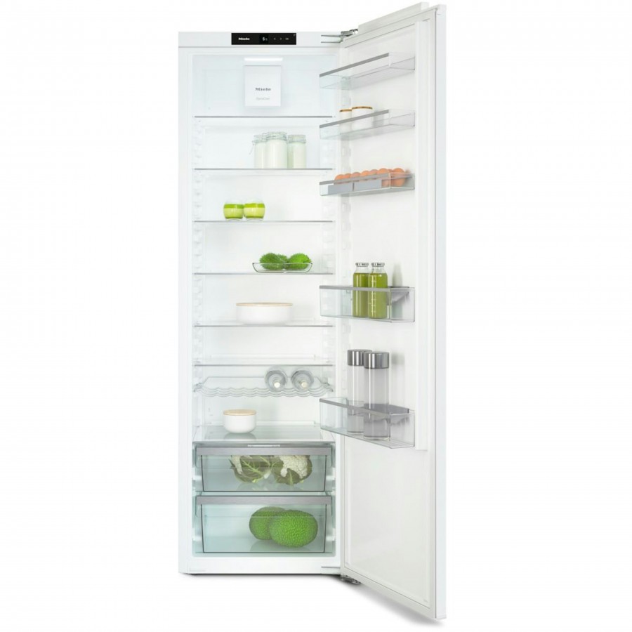 Miele K 7715 E inbouw koelkast biedt een perfecte balans tussen innovatieve technologie en praktisch gebruiksgemak. Met DynaCool zorgt deze koelkast voor een gelijkmatige temperatuurverdeling, waardoor je levensmiddelen langer vers blijven. De energiezuinige led-verlichting zorgt voor optimale zichtbaarheid zonder extra onderhoud. Dankzij het ComfortClean-systeem zijn de deurvakken eenvoudig te reinigen in de vaatwasser. Bovendien biedt de ruime indeling met ComfortSize voldoende ruimte voor grote boodschappen, terwijl de DailyFresh-lade de ideale vochtigheidsgraad voor groenten en fruit behoudt.