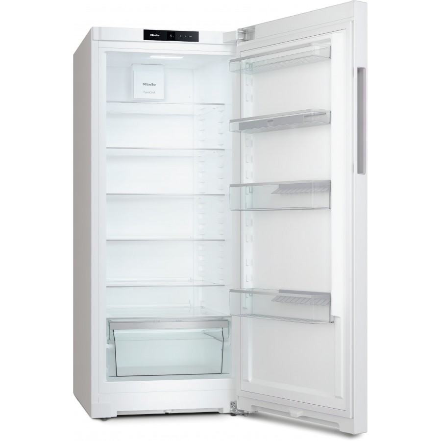 Deze Miele K4323ED ws is een vrijstaande koelkast van 145 cm hoog uitgevoerd met een praktische netto inhoud van 296 liter en voorzien van een greeploos design. Deze koelkast heeft een flexibel interieur met leggers van veiligheidsglas welke eenvoudig in hoogte verstelbaar zijn, degelijke vakken in de binnendeur en een ruime groentelade onderin het koelgedeelte. De koelkast is te bedienen door middel van het elektronische bedieningspaneel in de bovenrand van het koelgedeelte.