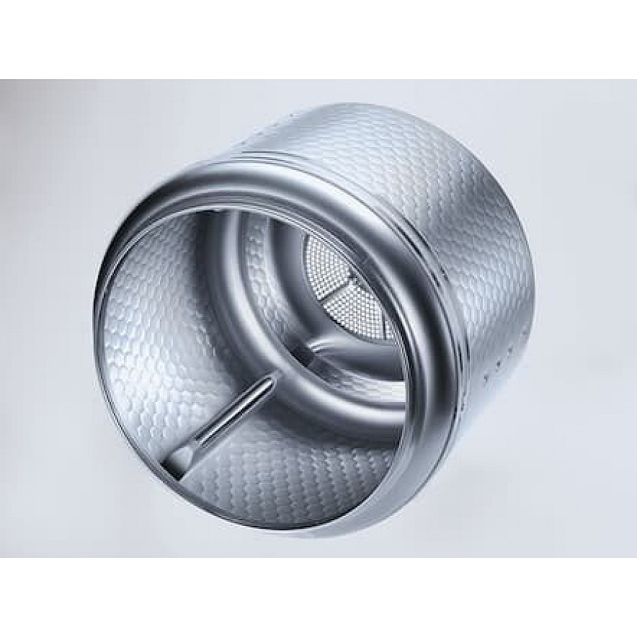 De honingraatstructuur van de SoftCare-trommel creëert een beschermend luchtkussen tussen het textiel en de trommelwand. Deze zorgvuldige behandeling beschermt stoffen tegen slijtage. Na het programma start automatisch de kreukbeveiliging, waarbij de trommel regelmatig draait om te voorkomen dat de was gaat kreuken als deze niet direct wordt uitgepakt.