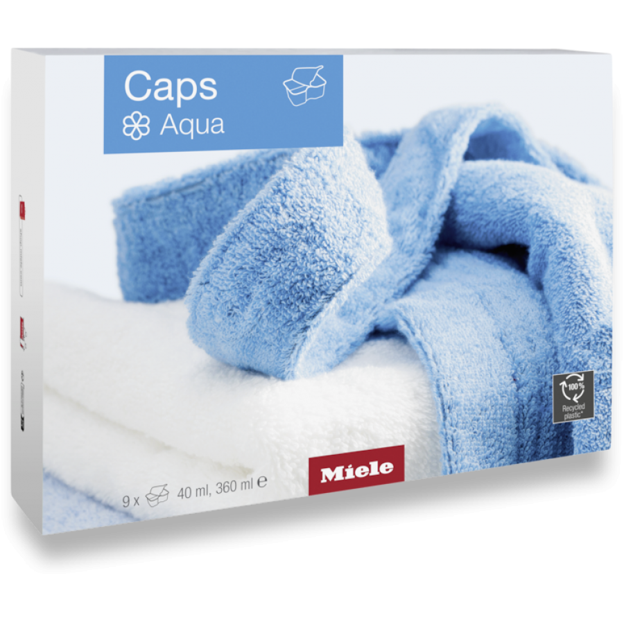 Deze Miele WA CSOA 0902 L Caps AquaPure wasverzachter biedt een diepe reiniging met een frisse geur, zorgt voor donszacht wasgoed zonder statische oplading en is verpakt in milieuvriendelijke capsules van gerecycled plastic voor een duurzame wasbeurt.