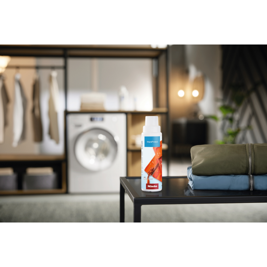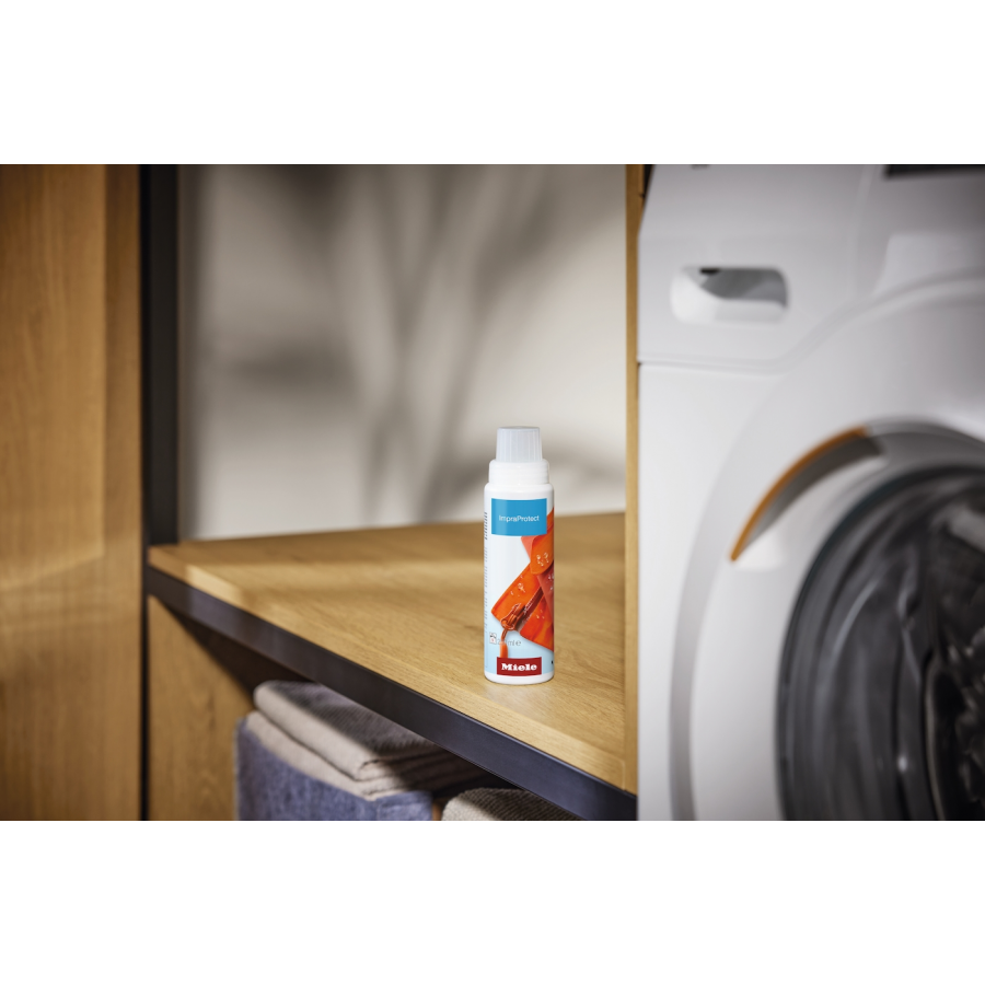 Deze Miele WA IM 253 L Speciaal wasmiddel ImpraProtect 250ml biedt een hoogwaardige, fluorkoolstofvrije impregnering die textiel effectief beschermt tegen vocht en vuil, de ademendheid behoudt en zeer zuinig in gebruik is voor sport- en regenkleding.
