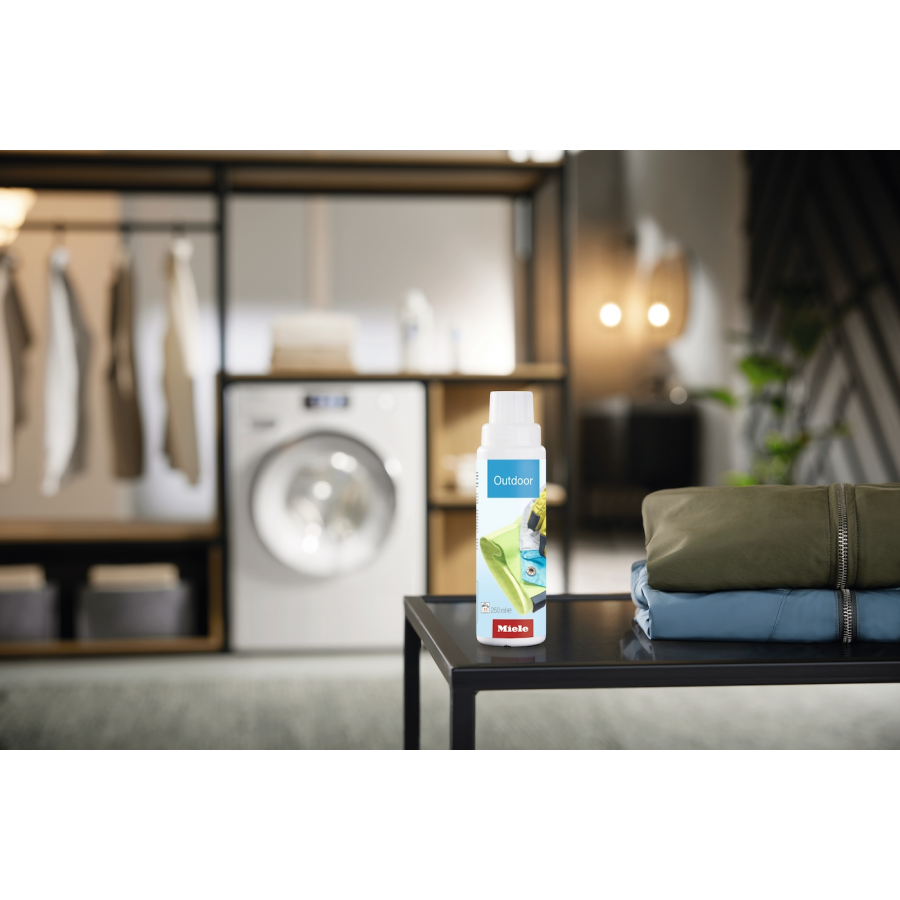 Deze Miele WA OU 252 L Speciaal wasmiddel Outdoor 250 ml biedt een grondige maar zorgzame reiniging voor technische kleding, onderscheidt zich door zijn impregnerende werking met lanoline, garandeert kleurbehoud en levert een hoog rendement van wel dertien volle wasbeurten uit één enkele fles.