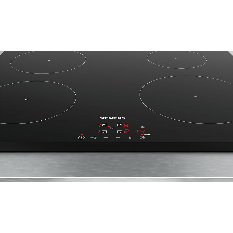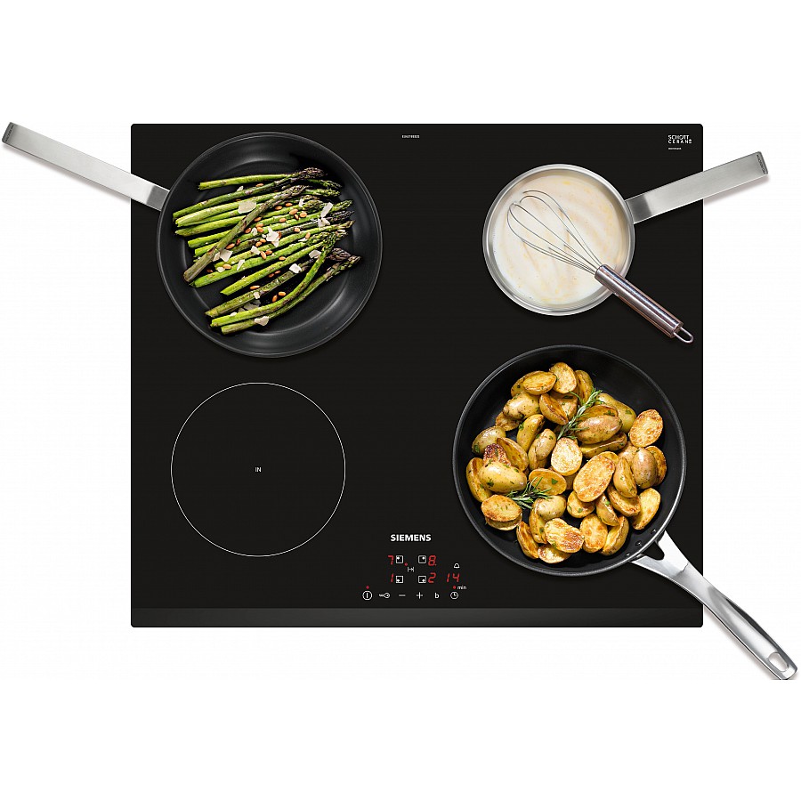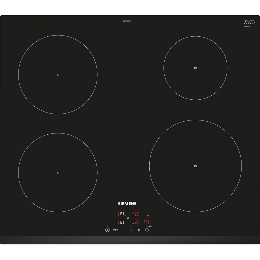 Deze Siemens EU631BEB2E inductie kookplaat beschikt over 4 kookzones. De fraaie Siemens kookplaat heeft een breedte van 60 cm. Koken op inductie is de meest comfortabele en energie efficiënte manier van eten bereiden. Inductie kookplaten vragen een elektrische aansluiting. Deze kookplaat heeft een aansluitwaarde van 4600 Watt.