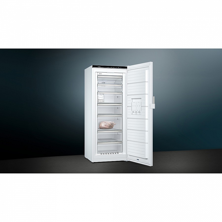 De freshSense technologie fungeert als een constante bewaker van het interne klimaat door continu de temperatuur te monitoren en kleine fluctuaties direct te corrigeren via het elektronische regelsysteem. Dit garandeert dat uw diepvriesproducten altijd worden blootgesteld aan de ideale bewaaromstandigheden, wat essentieel is voor het behoud van voedingswaarde, textuur en smaak over een langere periode.
