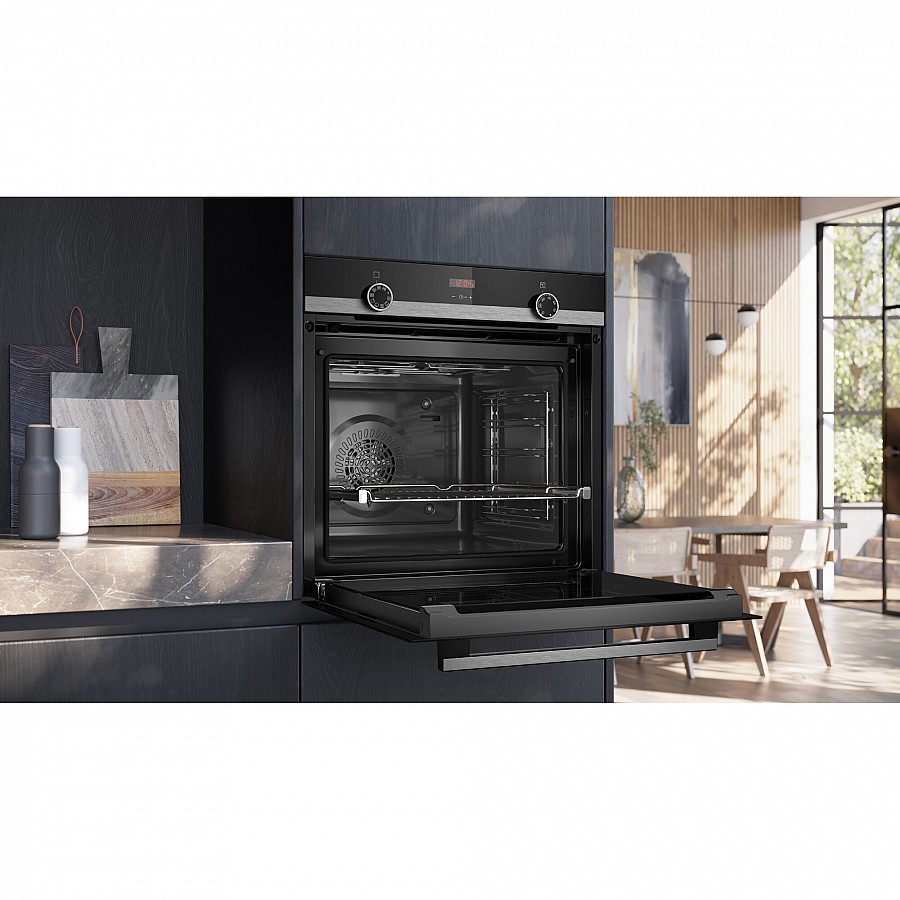 Het speciale humidClean systeem maakt gebruik van een eenvoudig hydrolysereinigingsproces waarbij waterdamp het aangekoekte vuil in de oven effectief verzacht. Hierdoor veegt u na de reinigingscyclus het vuil moeiteloos weg, wat zorgt voor een grondig schone oven zonder het gebruik van agressieve chemische schoonmaakmiddelen en met minimale inspanning van uw kant.