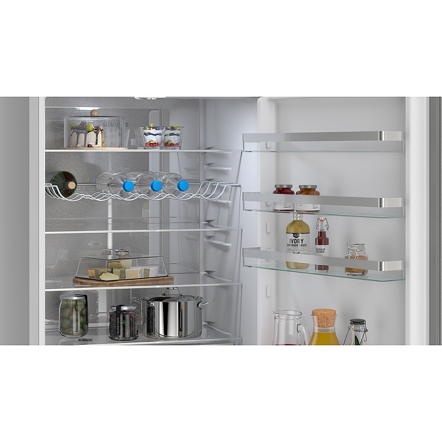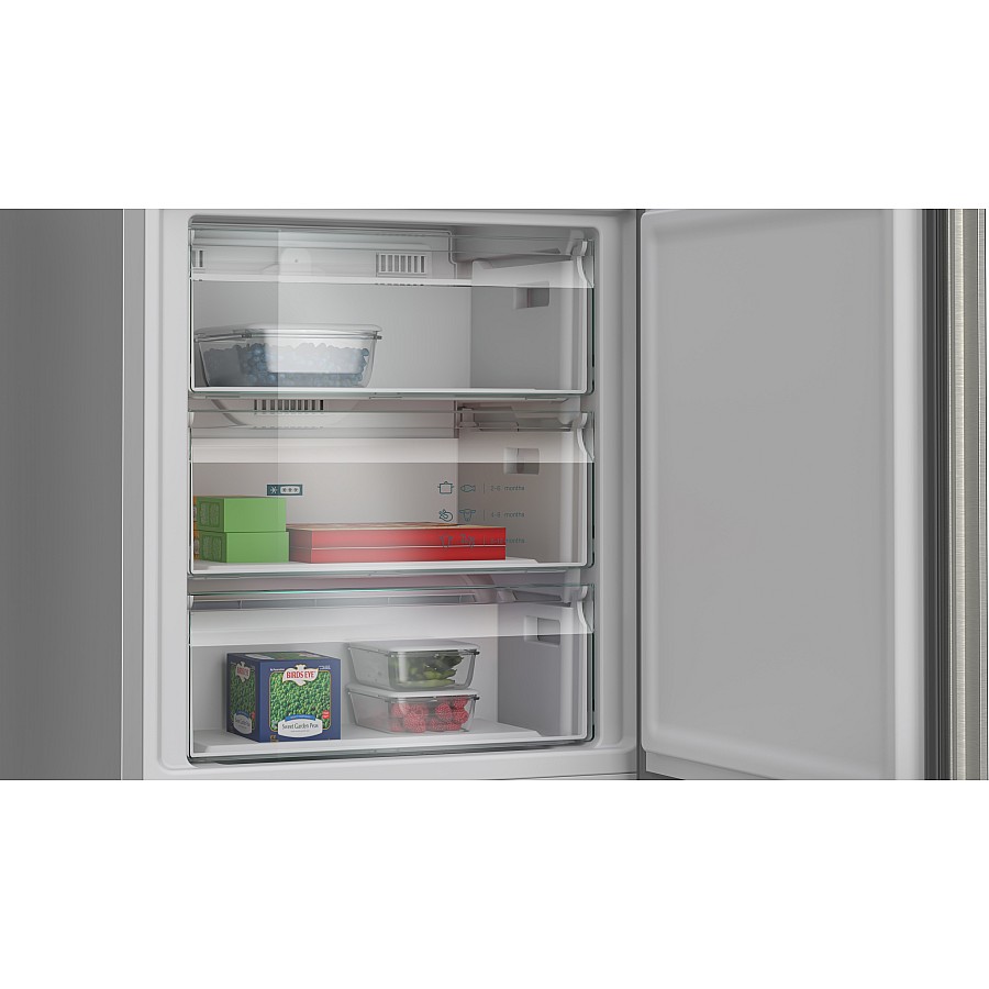 Deze Siemens KG49NVIAG vrijstaande koel-vriescombinatie combineert een ruime inhoud van 440 liter met energiezuinige A-label prestaties, het gemak van Total No Frost en een uitzonderlijk stil geluidsniveau van slechts 29 dB voor alledaags comfort.