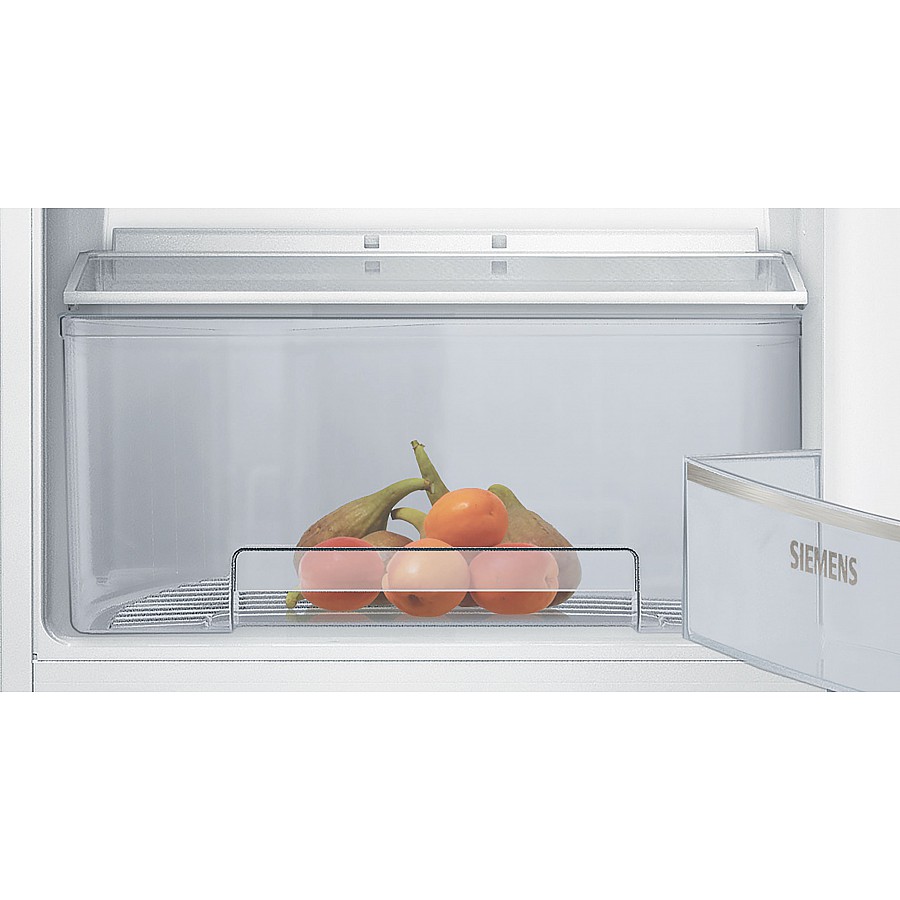 Deze Siemens KI20RNSF0 inbouw koelkast heeft een totale netto inhoud van 181 liter. De koelkast heeft een zuinig F energielabel en een geluidsniveau van 37 dB. De energiezuinige LED verlichting verlicht de binnenzijde helder en gelijkmatig.