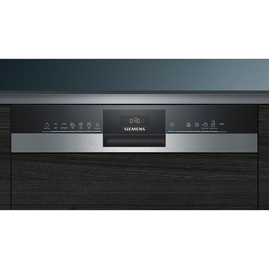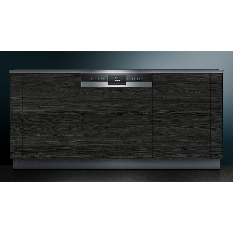 Deze Siemens vaatwasser is half-geïntegreerd en heeft de bediening aan de voorzijde van de deur net boven het keukenpaneel. Na inbouw van de vaatwasser kunt u uw eigen keukenpaneel weer monteren.