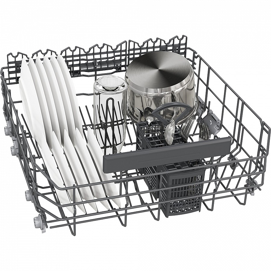 De varioLade en de in hoogte verstelbare bovenkorf met rackMatic systeem bieden maximale flexibiliteit bij het inruimen van verschillende soorten servies, van grote pannen tot fragiele glazen. Dit innovatieve ontwerp, inclusief neerklapbare houders, zorgt voor een optimale benutting van de ruimte en maakt het mogelijk om elk item een veilige en stabiele plek te geven tijdens de wascyclus.