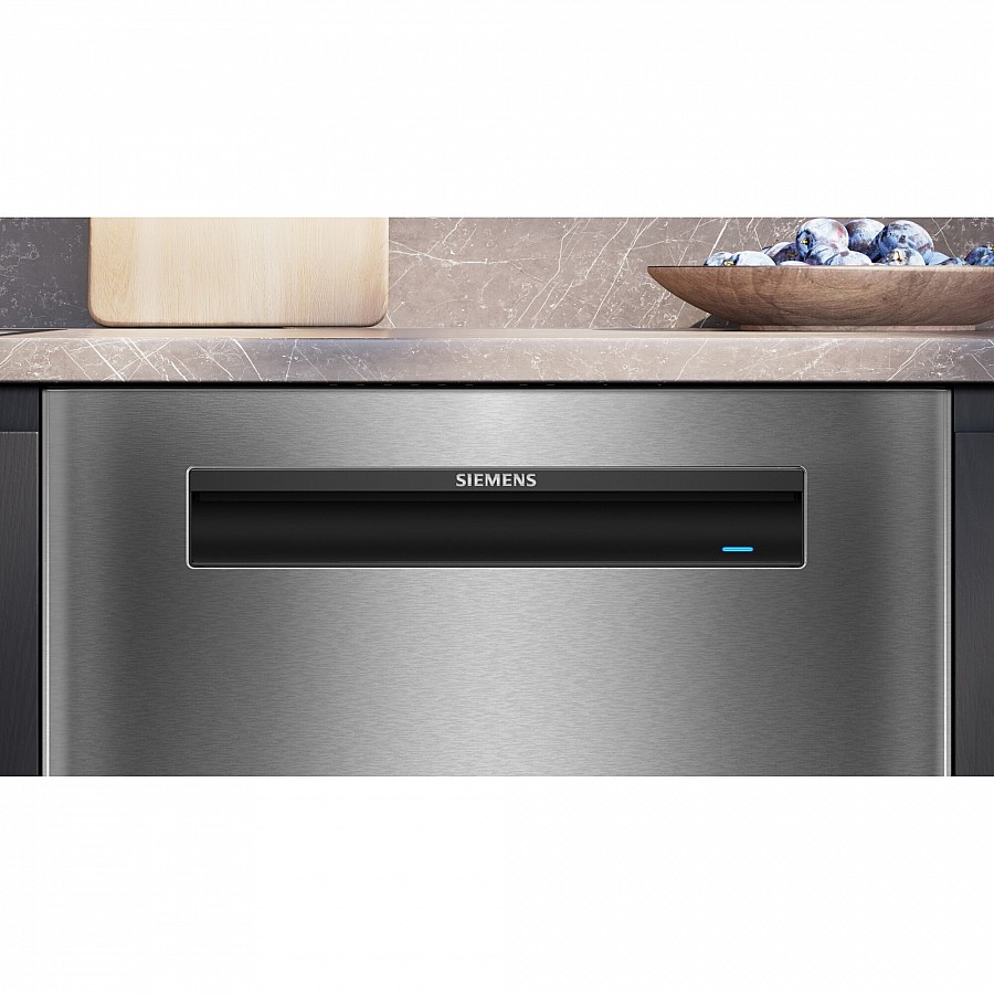 Deze Siemens SN15ES06CS vrijstaande vaatwasser combineert een strak, geïntegreerd design met geavanceerde technologie voor een superieure afwaservaring. Dankzij het comfortControl-ontwerp kan het toestel naadloos en perfect vlak onder uw werkblad worden geïnstalleerd, waarbij de bediening discreet in de bovenrand van de deur is geplaatst voor een rustig aanzicht. Met de varioSpeed Plus functie wast en droogt u uw vaat tot wel drie keer sneller, zonder in te leveren op het schoonmaakresultaat, en kunt u dit zelfs op afstand activeren via de Home Connect app. De innovatieve varioLade biedt een extra, flexibel laadniveau voor bestek, espressokopjes en keukengerei, wat zorgt voor een optimale benutting van de ruimte. Het rustgevende emotionLight verlicht de binnenkant in stijlvol blauw zodra u de deur opent, zodat u alles perfect kunt zien.