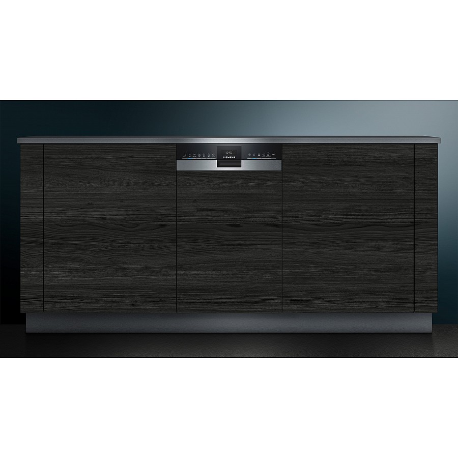 Deze Siemens vaatwasser is half-geïntegreerd en heeft de bediening aan de voorzijde van de deur net boven het keukenpaneel. Na inbouw van de vaatwasser kunt u uw eigen keukenpaneel weer monteren.