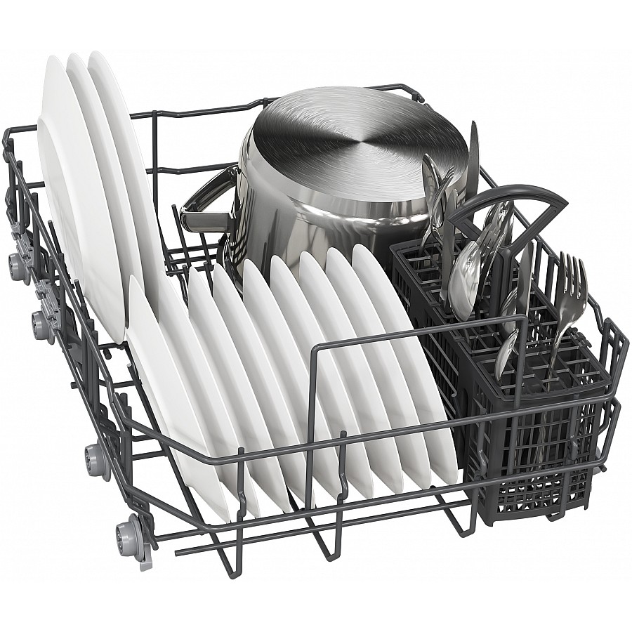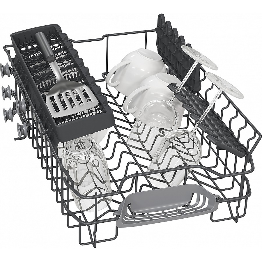 De koolborstelloze iQdrive motor van de Siemens SR61HX17KE volledig geïntegreerde vaatwasser zorgt voor een extreem stil werkgeluid van slechts 46 dB, een langere levensduur en een laag energieverbruik. Gecombineerd met de varioSpeed Plus-functie, die via de app wordt geactiveerd, verkort u de programmaduur tot wel driemaal zonder in te leveren op het reinigingsresultaat. Dit betekent dat u snel een schone vaat heeft wanneer dat nodig is, terwijl de machine op de achtergrond fluisterstil zijn werk doet.