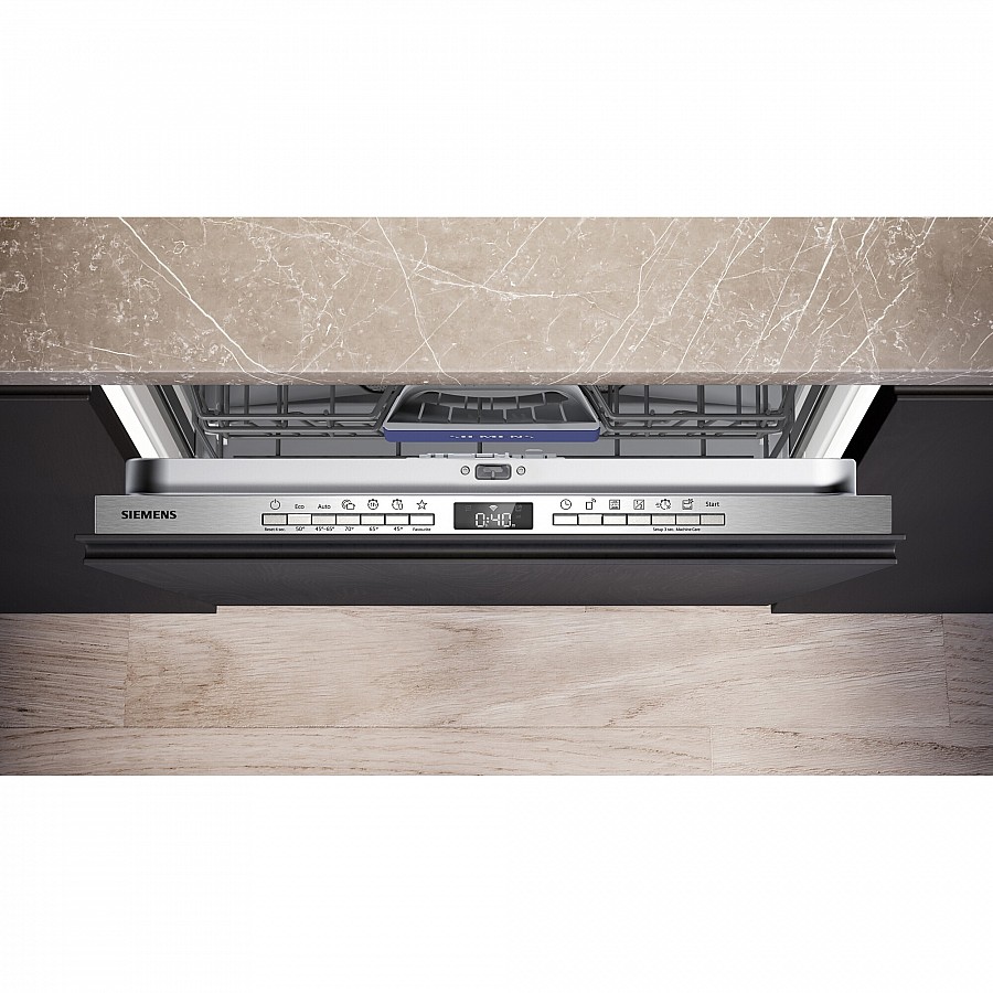 Deze Siemens SX63EX06VE volledig geïntegreerde vaatwasser brengt ultiem gemak en superieure reinigingskracht in uw keuken. Met de innovatieve Home Connect technologie bedient u de vaatwasser eenvoudig via uw smartphone of spraakassistent, zelfs wanneer u niet thuis bent. De varioSpeed Plus functie maakt het mogelijk om de vaat tot wel drie keer sneller schoon te krijgen, perfect voor onverwachte bezoekers. Dankzij de gecertificeerde hygiëneprestaties worden uw borden en bestek niet alleen zichtbaar schoon, maar ook hygiënisch rein bij de Eco 50°C- en Intensief 70°C-programma's. De uitzonderlijke flexibiliteit van de varioFlex-korven en de handige varioLade zorgen voor een moeiteloos inruimproces, waardoor zelfs de lastigste pannen en espressokopjes eenvoudig hun plek vinden.