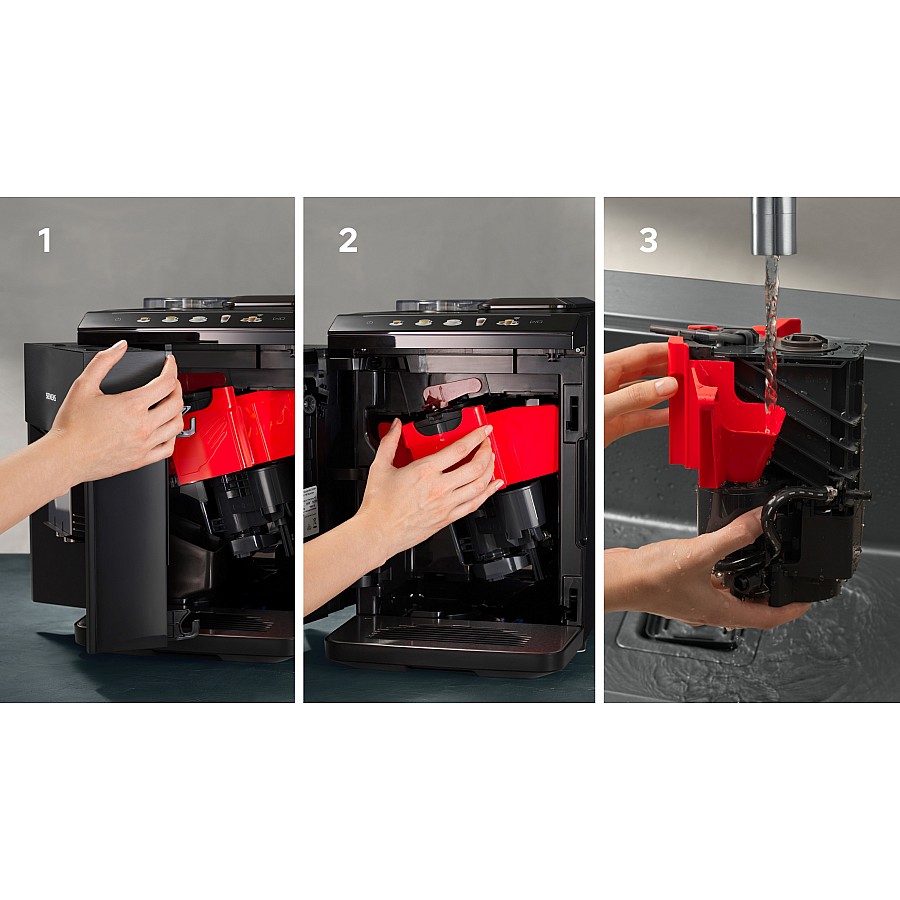Het geïntegreerde BRITA Intenza waterfilter optimaliseert de waterkwaliteit, wat de smaaknuances van de koffie versterkt en kalkaanslag reduceert om de levensduur van het apparaat te verlengen. Gecombineerd met het automatische calc'nClean programma en de AutoMilk Clean functie, die het melksysteem na elk gebruik stoomreinigt, garandeert dit een consistente, hygiënische en onderhoudsarme koffiebereiding dag in dag uit zonder gedoe.