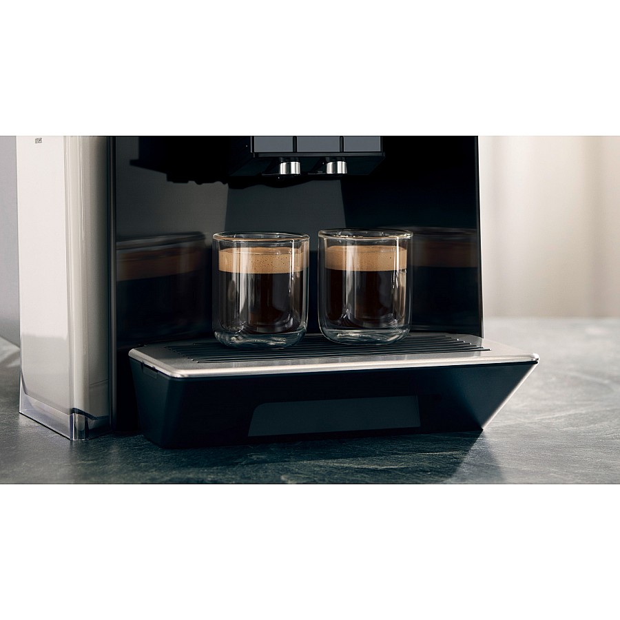 Het geïntegreerde melkreservoir en de aparte uitgifte voor warme melk en schuim maken het creëren van melkspecialiteiten moeiteloos. Na elke bereiding voert de autoMilk Clean een hygiënische reiniging uit, terwijl het calcnClean systeem ontkalken en reinigen combineert. Verwijderbare, vaatwasbestendige onderdelen en automatische notificaties garanderen eenvoudig onderhoud.