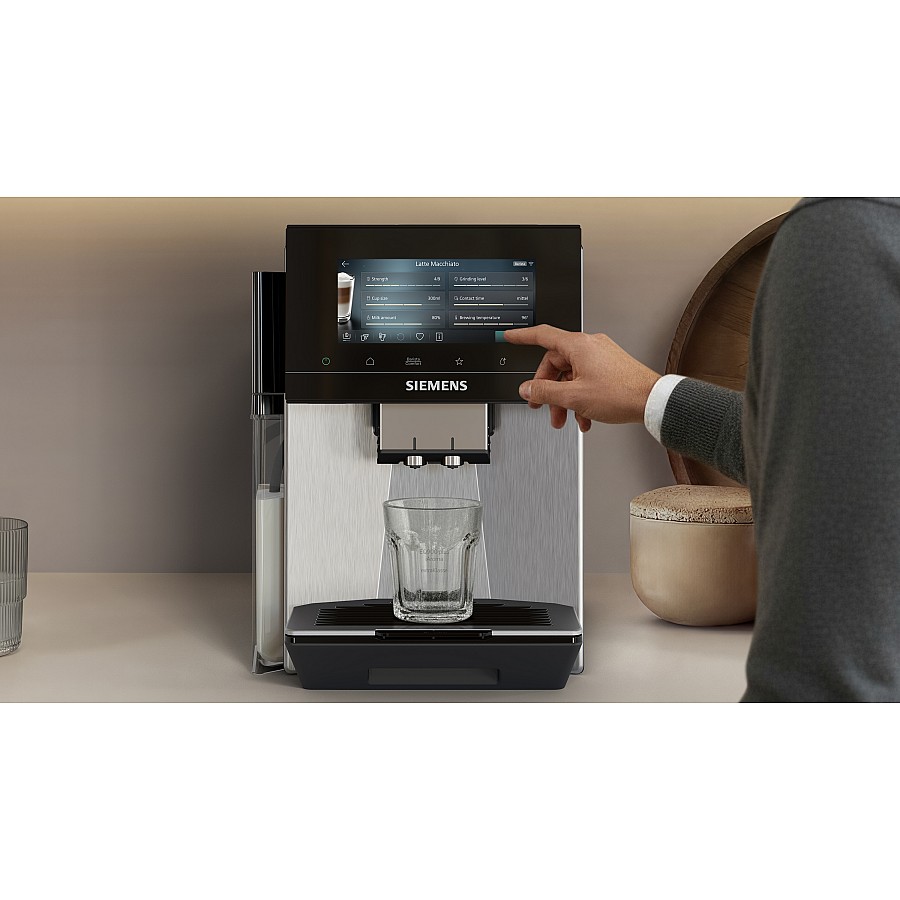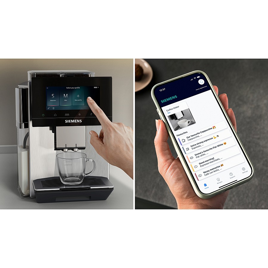 Het dualBean System voorziet de machine van twee volledig onafhankelijke bonenreservoirs met ieder een eigen elektronisch maalsysteem, zodat je twee verschillende soorten bonen altijd vers en perfect afgesteld houdt. Bediening is eenvoudig via het omvangrijke 6,8 inch iSelect full-touch display, dat met swipe- en touchfunctionaliteit een intuïtieve en uitgebreide toegang biedt tot alle drankopties en persoonlijke profielen.