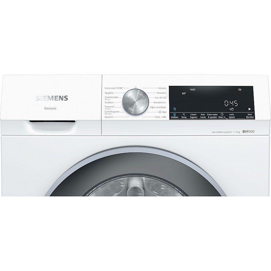 De Siemens WG44G108NL wasmachine heeft een vulgewicht van 9 kg. De wasmachine centrifugeert de was met een snelheid van 1400 toeren en de machine heeft een energielabel A.