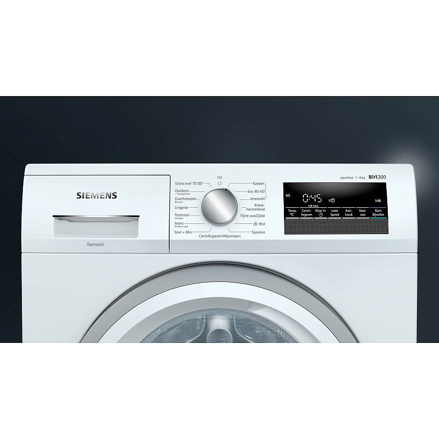 Deze Siemens WM14N295NL wasmachine heeft een vulgewicht van 8 kg, 1400 toeren. Door de activewater technologie detecteert de wasmachine halve beladingen en bespaart zo water en is beter voor het milieu. Makkelijk te bedienen wasmachine zonder al te veel programmas en opties. Standaard programma's: Katoen, Kreukherstellend, Fijne was/Zijde, Wol handwas. en als dat niet genoeg is heet de machine ook nog speciale programma's, zoals: Sport, Gordijnen, Superkort 30/15 min,Spoelen, Snel/Mix. Mocht je perongeluk nog een kledingstuk vergeten zijn dan is dat voor dit apparaat geen probleem door de handige bijvulfunctie.
