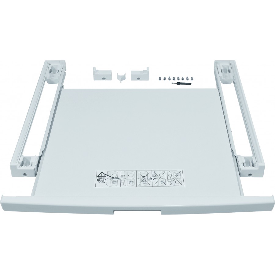 De constructie is speciaal ontwikkeld voor het stapelen op grote wasmachines met een diepte van meer dan 55 centimeter. De robuuste afmetingen van 595 mm breedte en 574 mm diepte zorgen voor een perfecte pasvorm en optimale draagkracht voor uw specifieke toestelcombinatie.